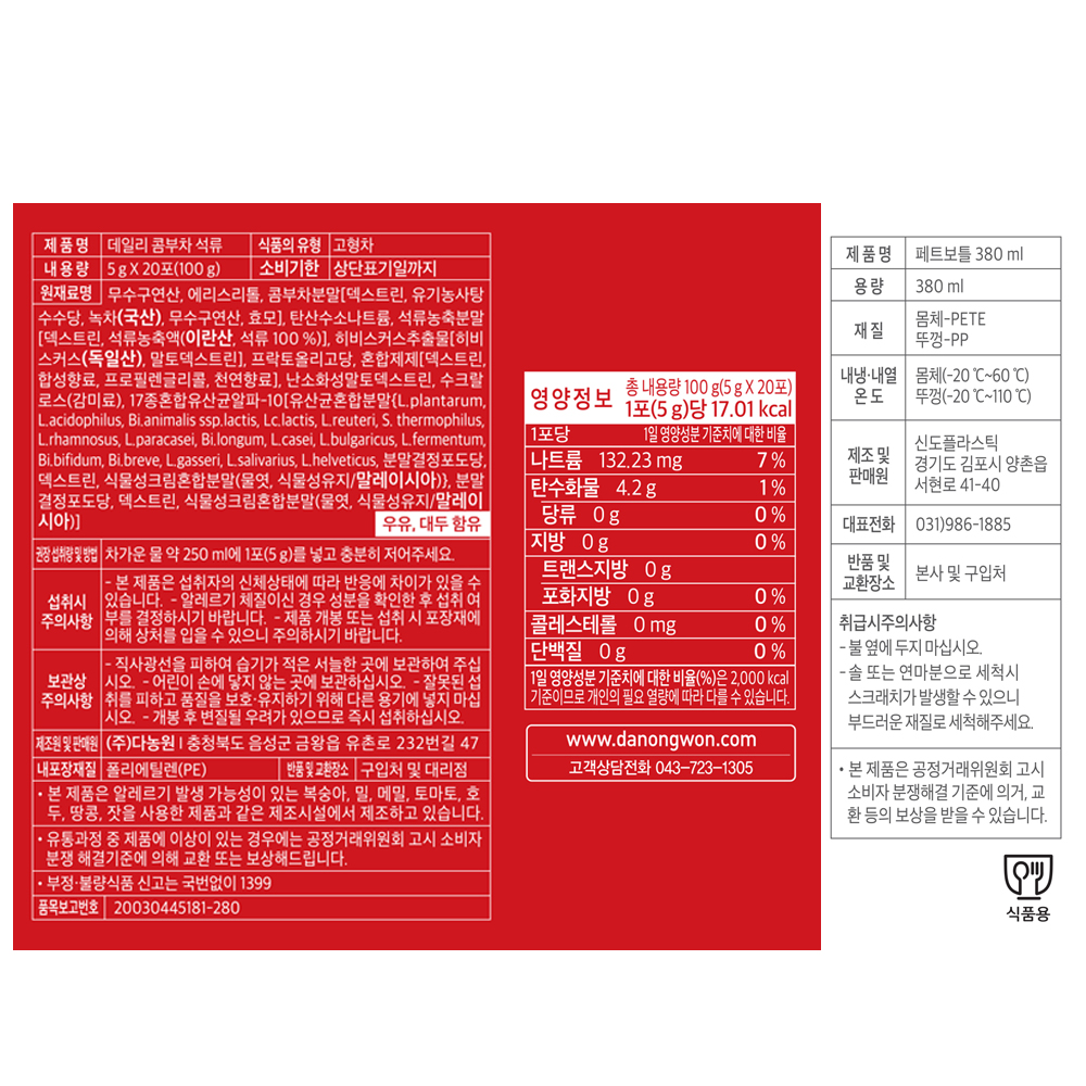 ■ 품명 및 모델명 : 데일리 콤부차 석류(5g*20T/다농원)