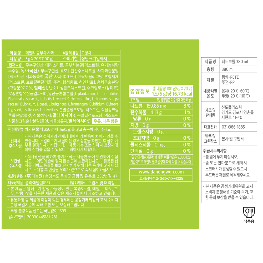 ■ 품명 및 모델명 : 데일리 콤부차 사과(5g*20T/다농원)