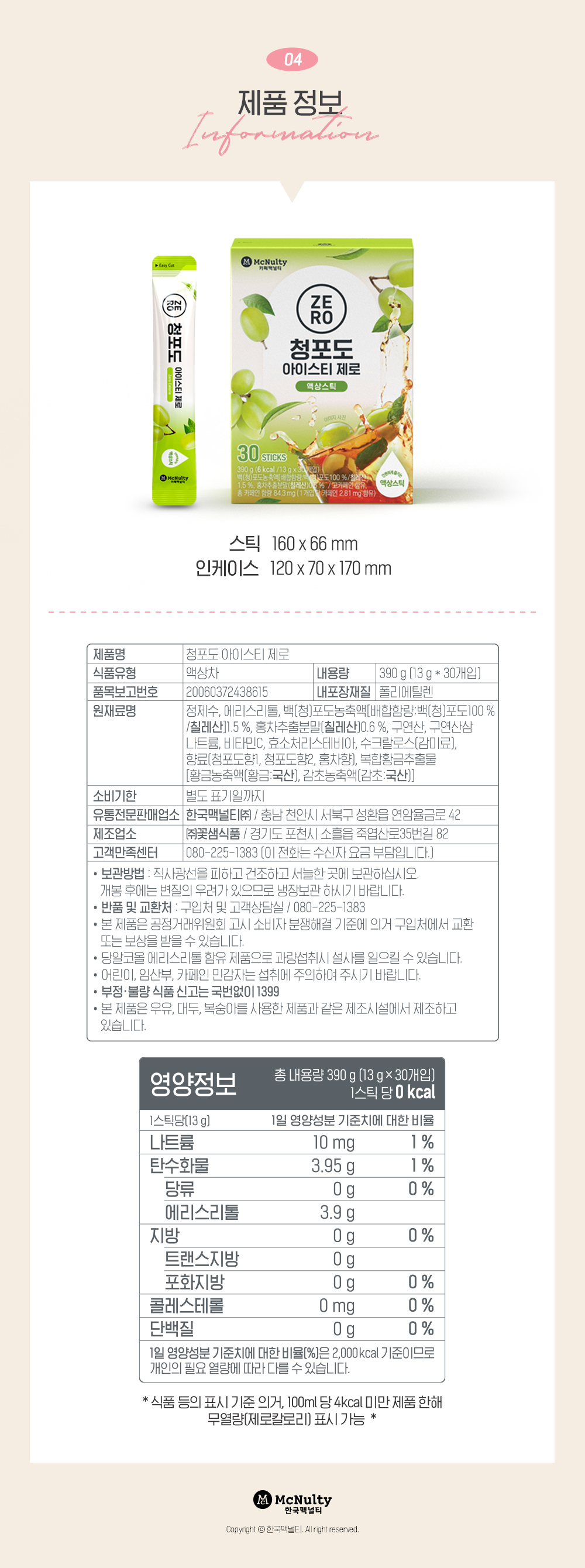 ■ 품명 및 모델명 : 맥널티 청포도 아이스티 제로스틱(3g*30T/맥널티)