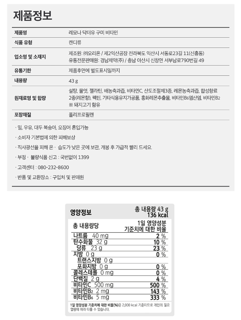 ■ 품명 및 모델명 : 레모나 닥터유 구미 비타민(43g/경남제약)
