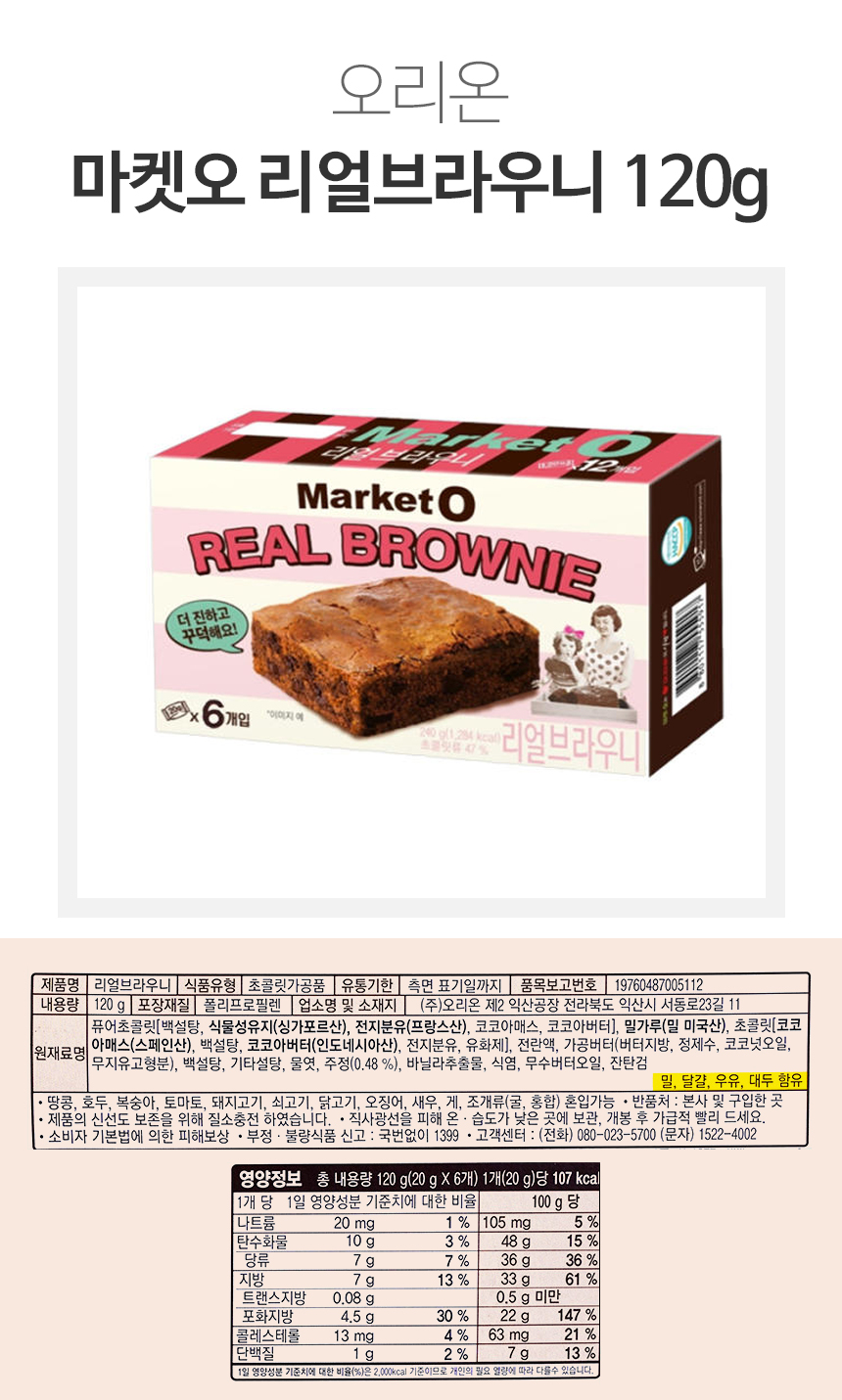 ■ 품명 및 모델명 : 마켓오 리얼브라우니(120g/오리온)