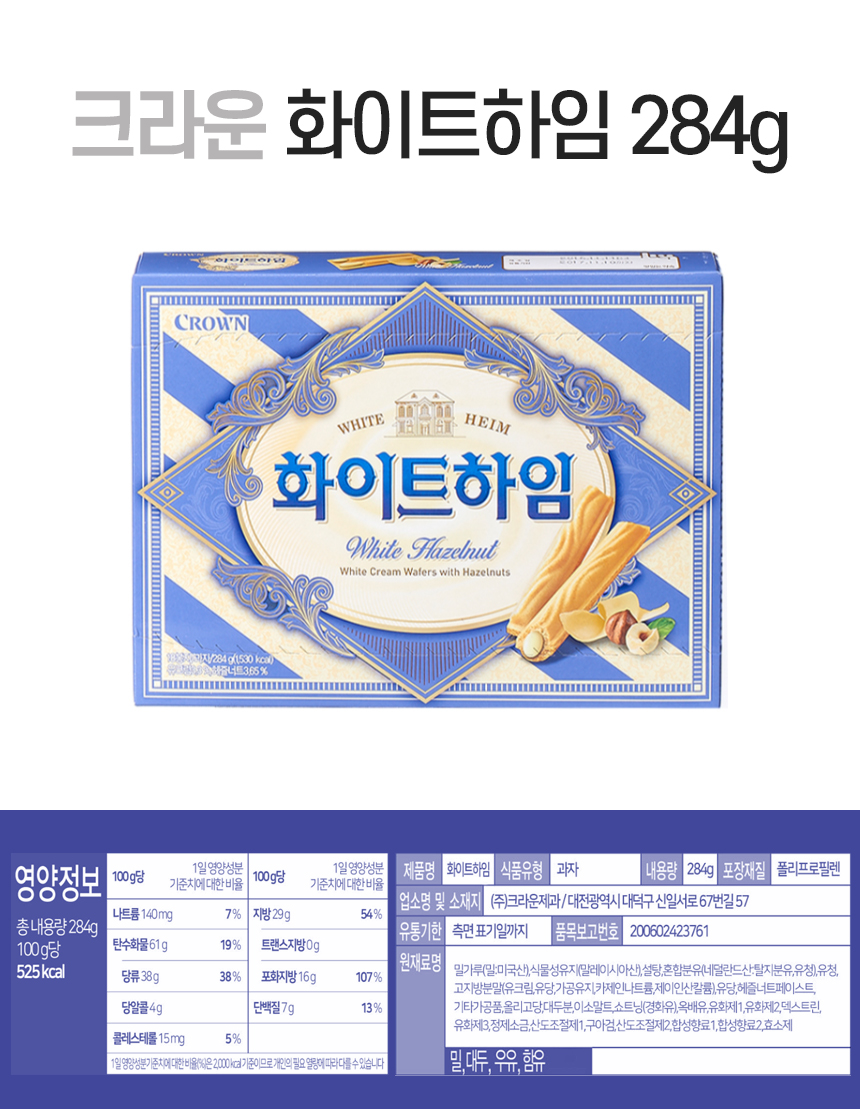 ■ 품명 및 모델명 : 화이트하임(284g/크라운제과)