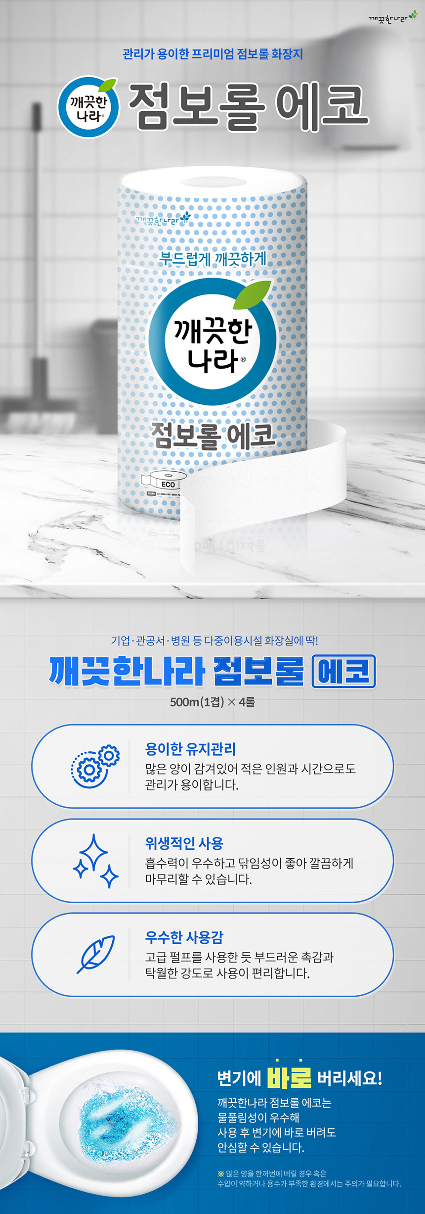 ■ 품명 및 모델명 : 깨끗한나라 점보롤 화장지 에코 (500m*4롤/1겹)