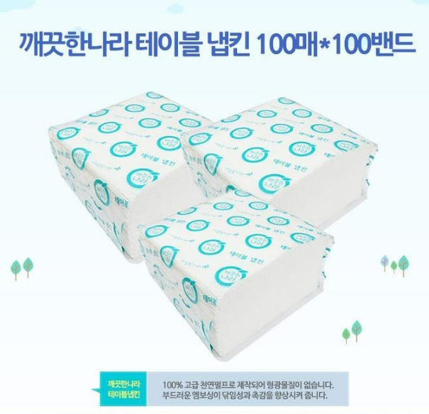 ■ 품명 및 모델명 : 깨끗한나라 테이블 냅킨 (100매*100밴드)