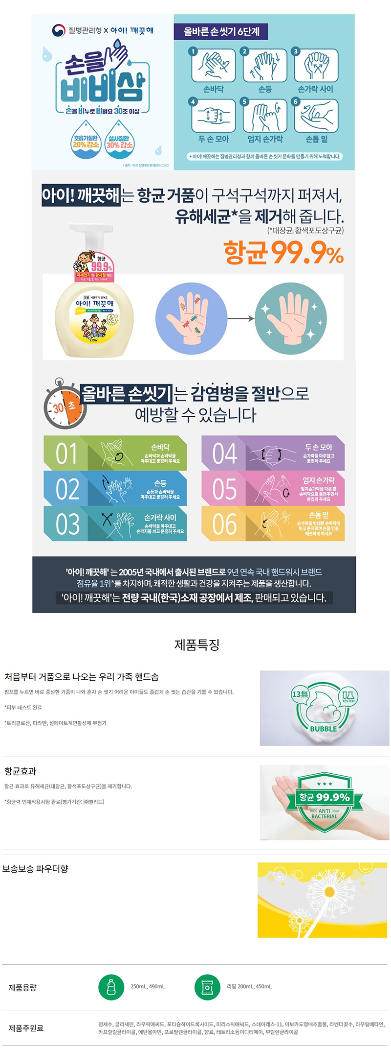 ■ 품명 및 모델명 : 아이깨끗해 핸드워시 용기(파우더순/490ml/라이온코리아)