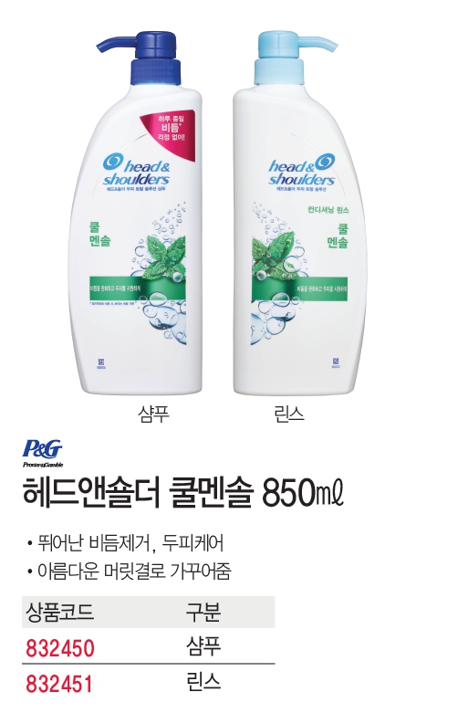■ 품명 및 모델명 : 헤드앤숄더 쿨멘솔린스 850ml