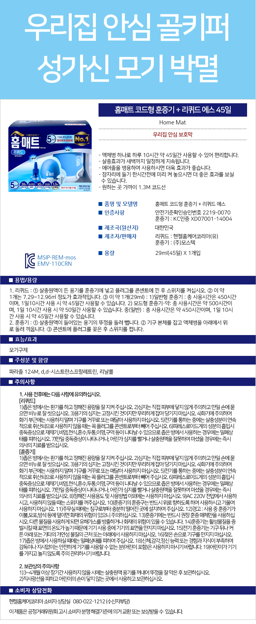 ■ 품명 및 모델명 : 홈매트 코드훈증기 본체+리필1입