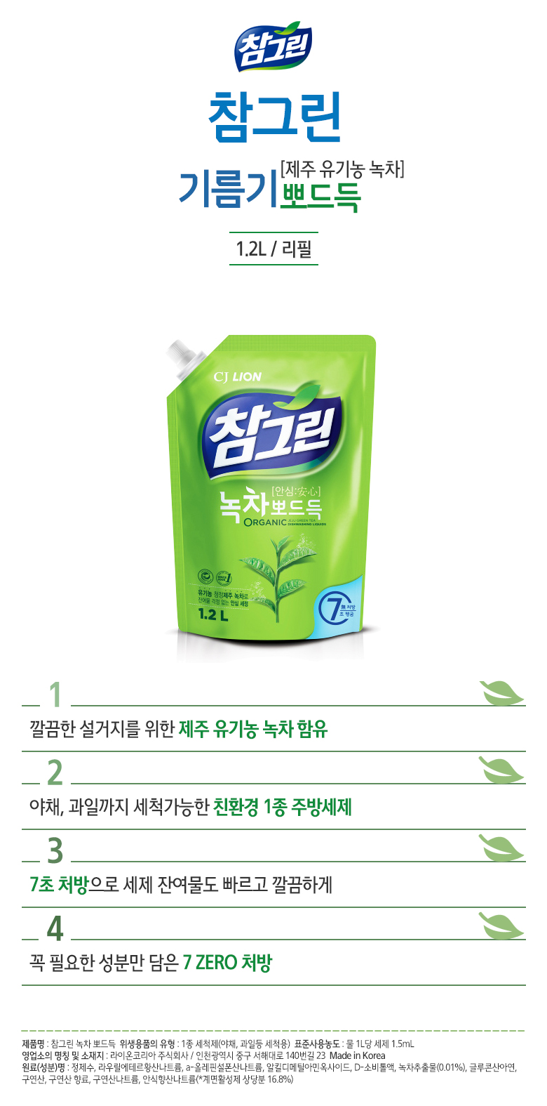 ■ 품명및모델명 : 참그린 주방세제(리필/1.2L/라이온코리아)