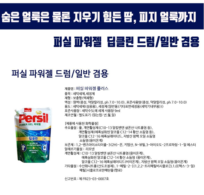 ■ 품명및모델명 : 퍼실 파워젤(리필/일반/드럼 겸용/2.1L)