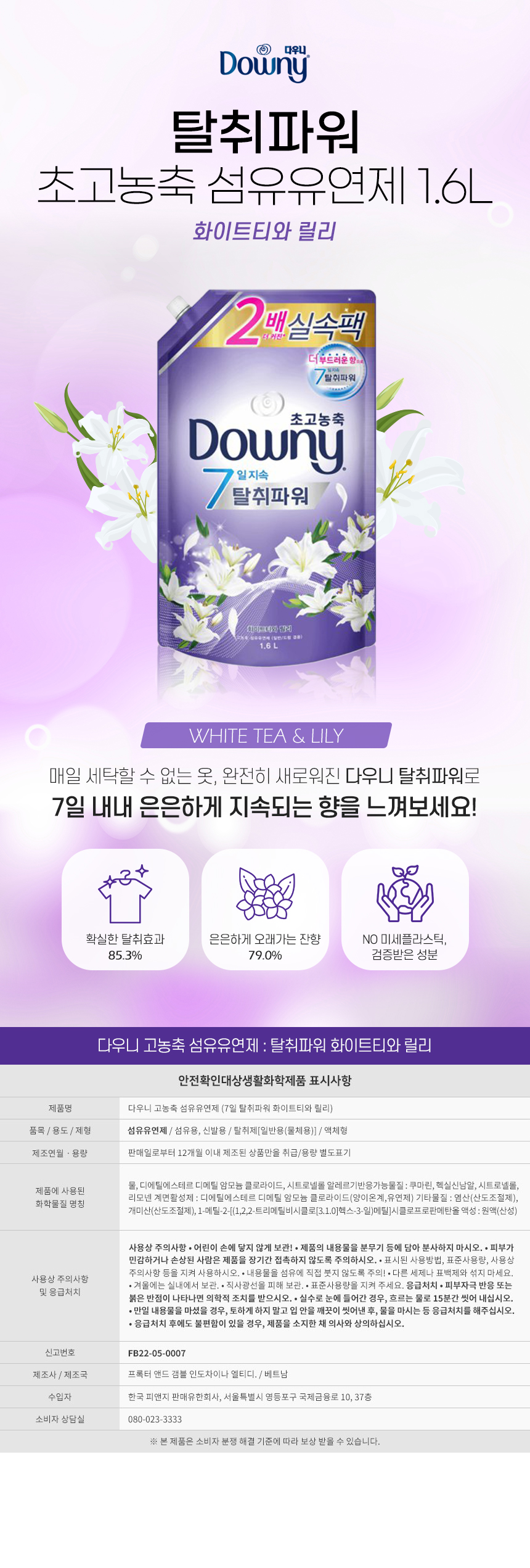 ■ 품명및모델명 : 다우니 섬유유연제(리필/화이트티와 릴리향/1.6L)