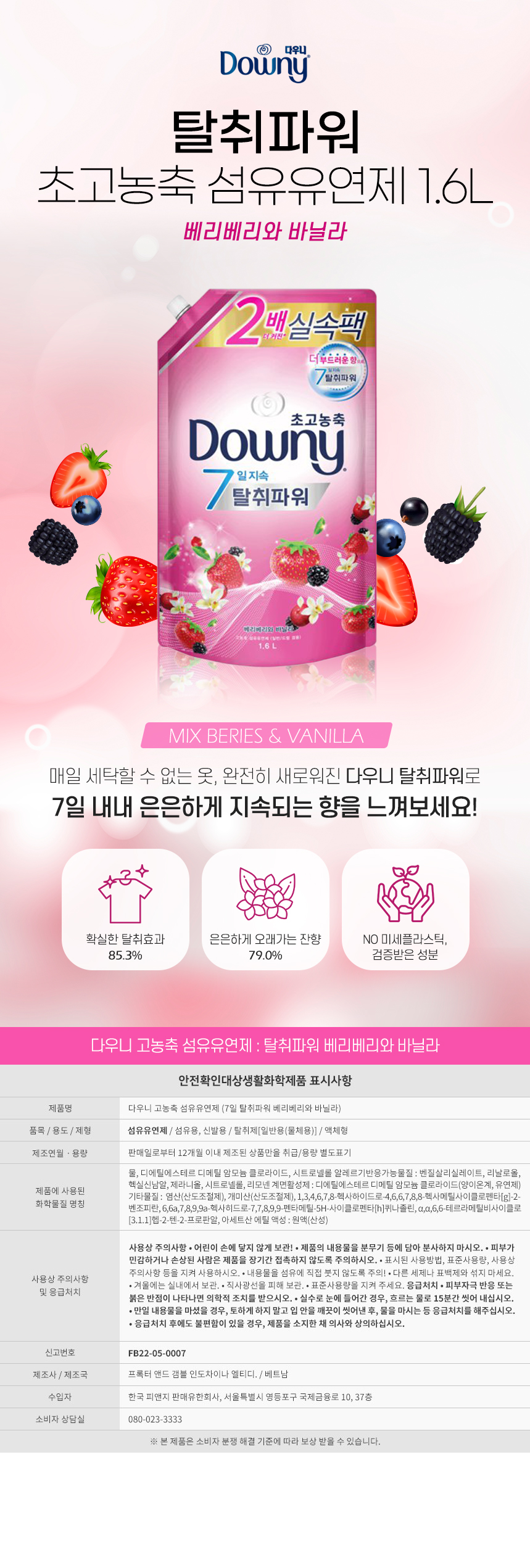 ■ 품명및모델명 : 다우니 섬유유연제(리필/베리베리 바닐라크림향/1.6L)