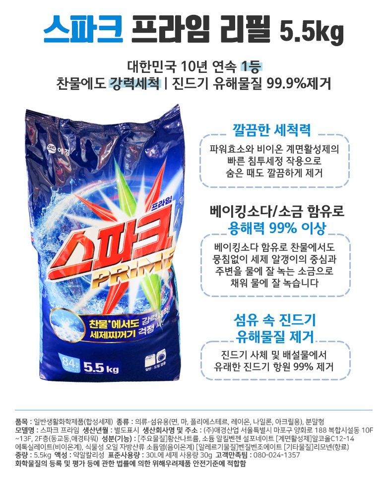■ 품명및모델명 : 스파크 세탁세제(프라임/5.5kg/애경)