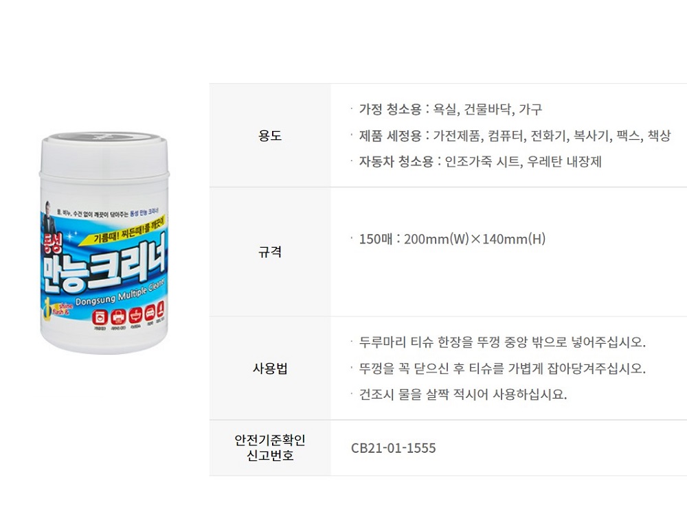 ■ 품명 및 모델명 : 만능크리너(150매/동성크리너)