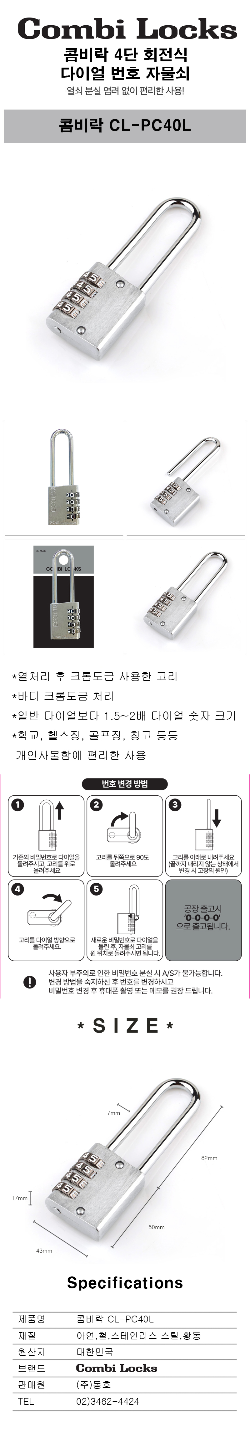 콤비락 자물쇠(CL-PC40L/4단/회전식/다이얼)/개