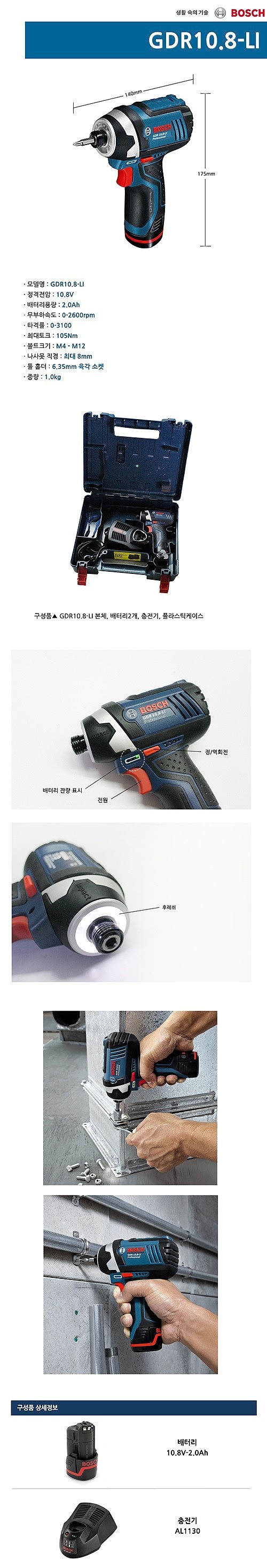 [업체별도배송]충전 임팩 드라이버(GDR10.8-LI/보쉬)/개
