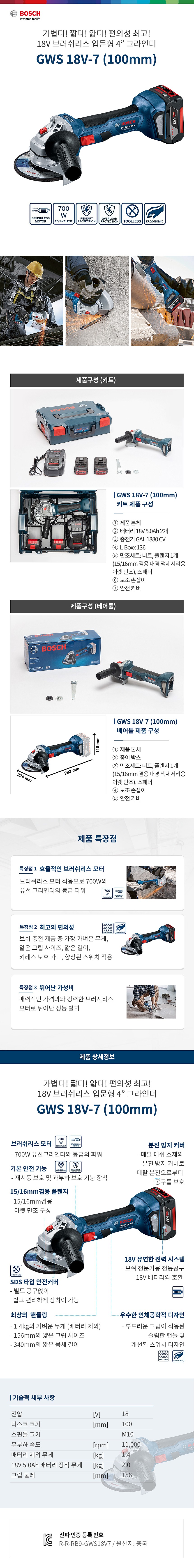 ■ 품명및모델명 : [업체별도배송]4인치 충전 그라인더(GWS18V-7/보쉬)