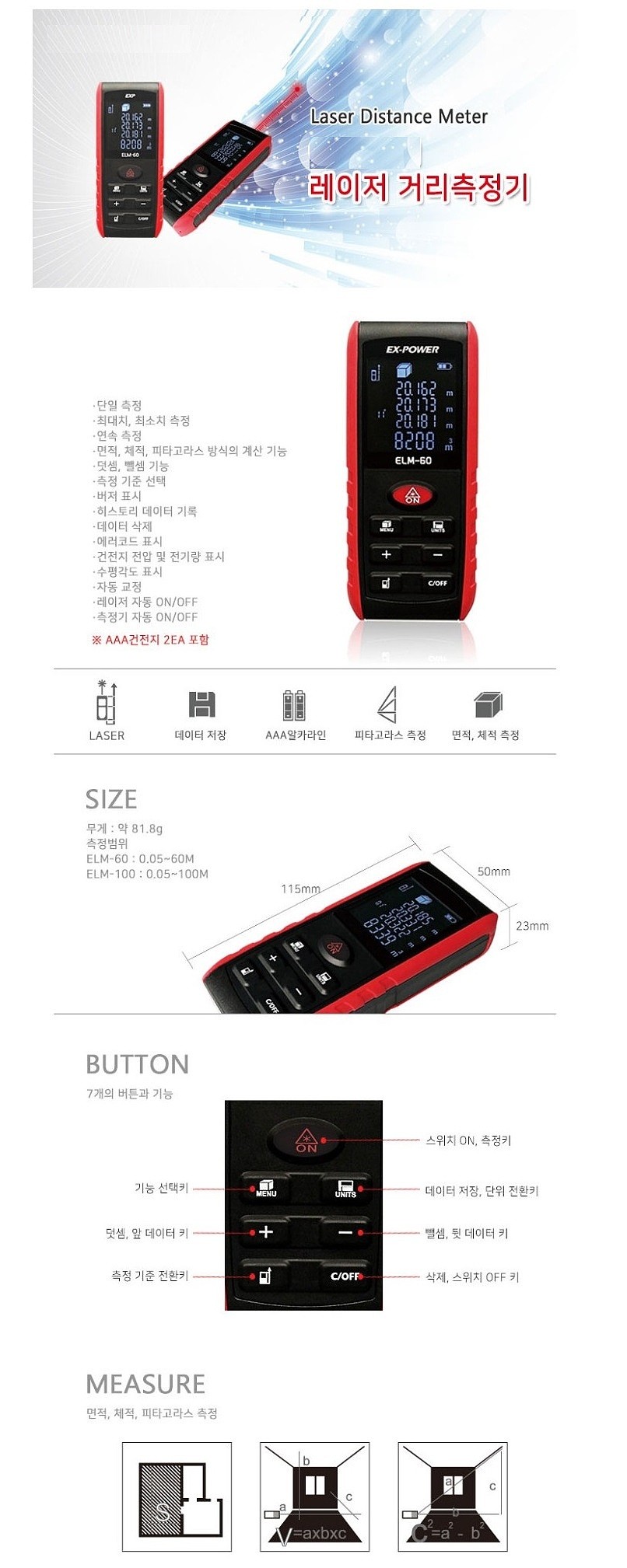 [업체별도배송]레이저 거리측정기(일반형/ELM-60/측정범위(m):0.05~60/나비PB)/개