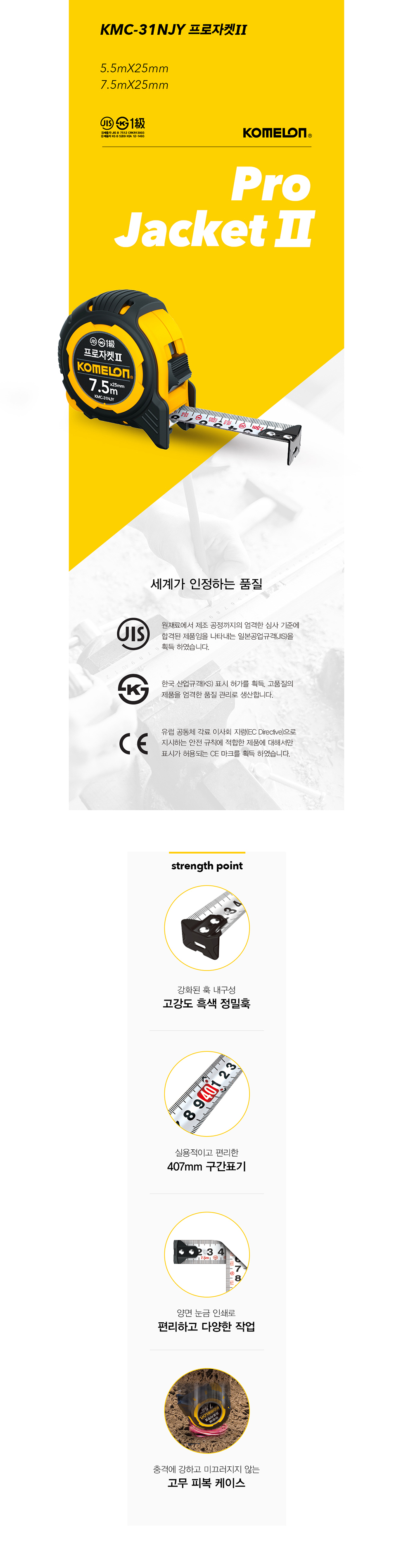 ■ 품명및모델명 : 프로자켓 II 줄자(5.5M*25mm/KMC-31NJY/코메론)