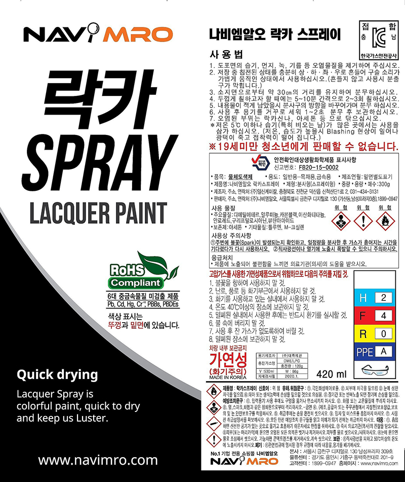 ■ 품명및모델명 : 락카 스프레이(백색/420ml/나비PB)
