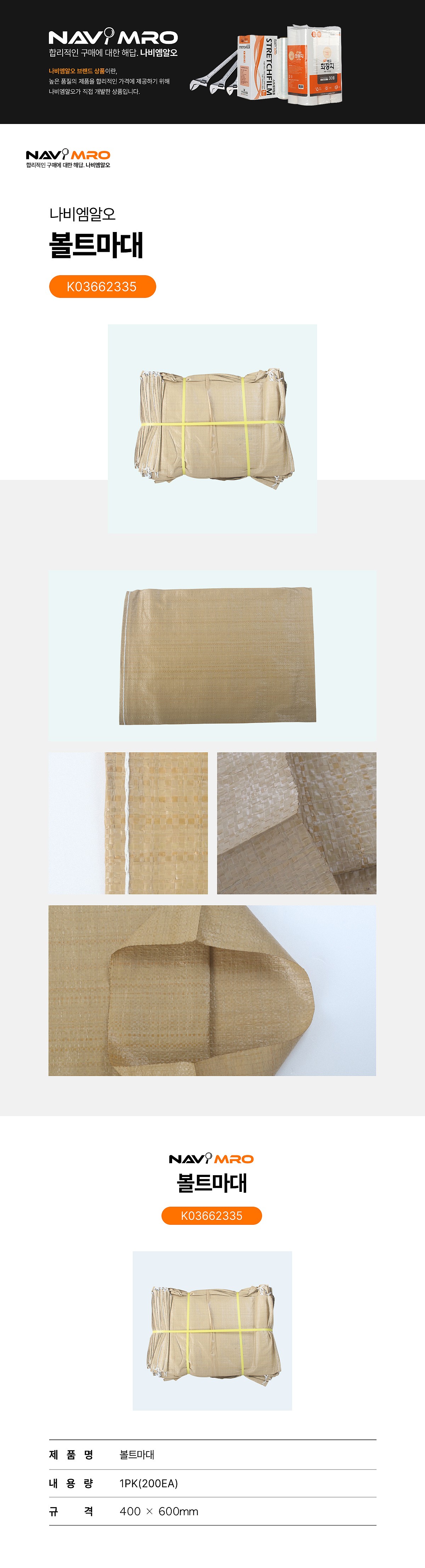 ■ 품명및모델명 : [업체별도배송]볼트마대(10kg/400*600mm/200개입/나비PB)