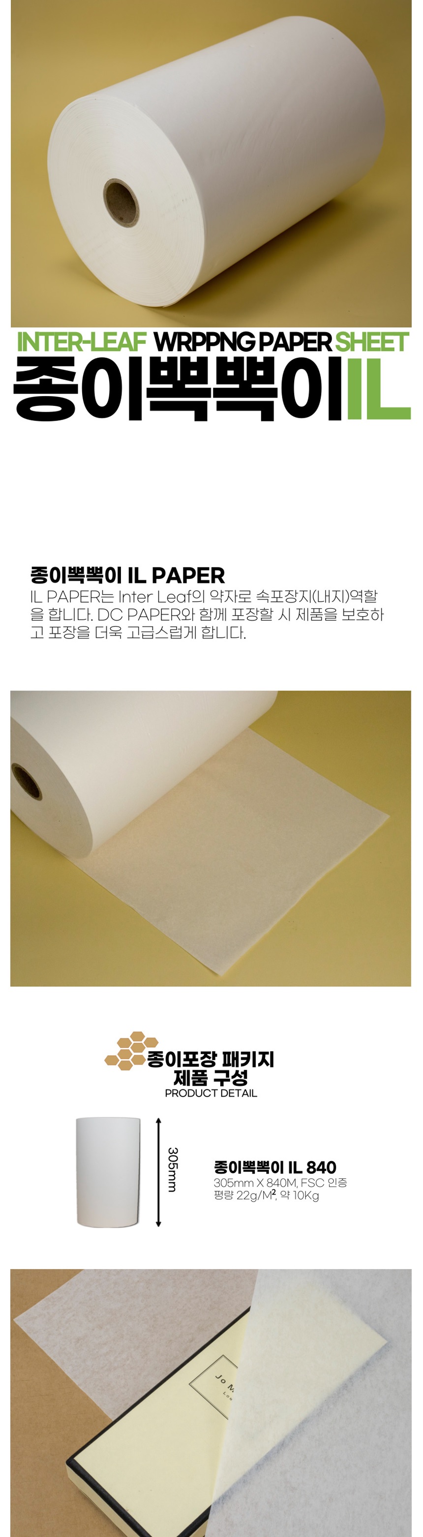 [업체별도배송]종이뽁뽁이 롤 내지(화이트/IL840W/300mm*840M)/개