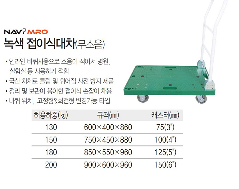 ■ 품명및모델명 : 녹색 접이식대차(무소음/850*550*960mm/180kg/나비PB)
