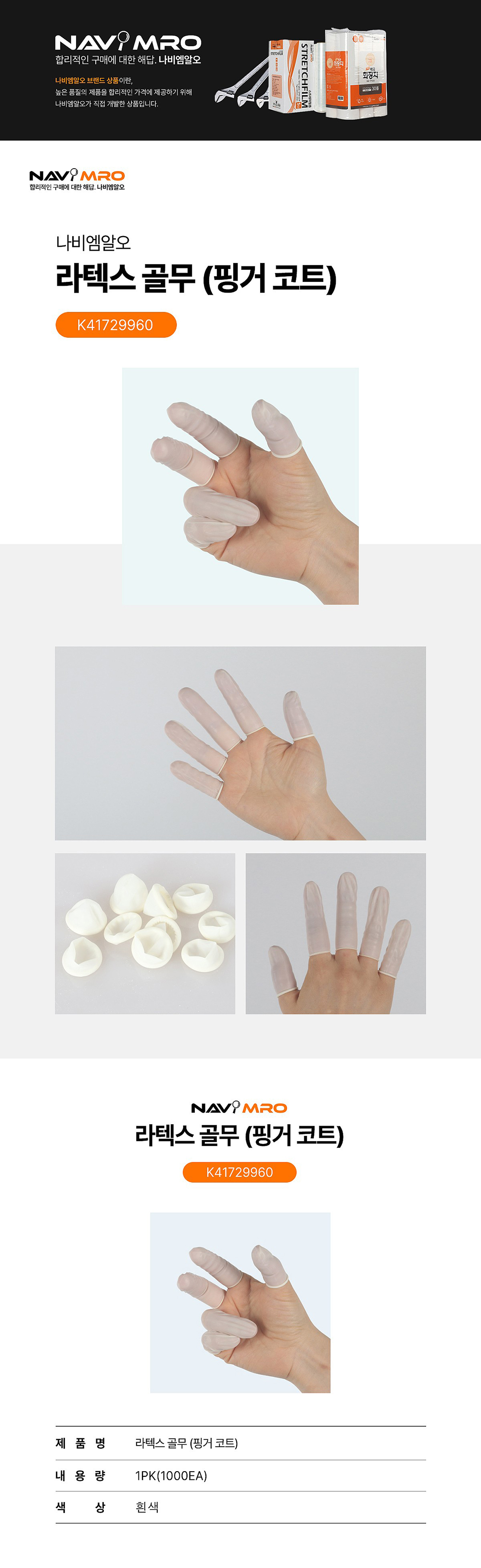 ■ 품명및모델명 : [업체별도배송]라텍스 골무(핑거 코트/흰색/타입:롤/L/파우더:유(LOW POWDERED)/1000개입/나비PB)