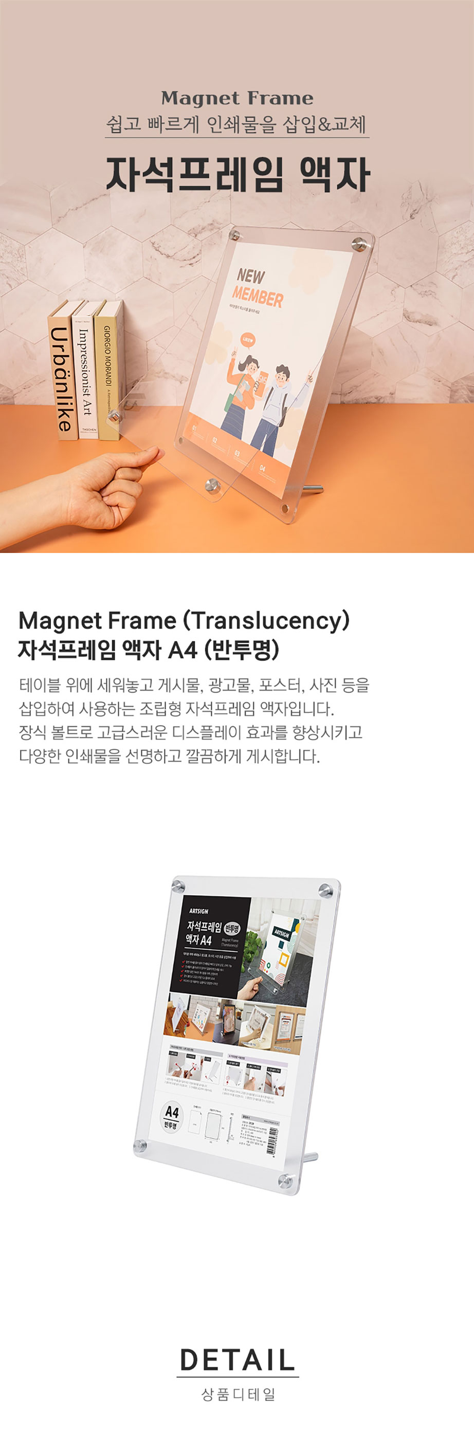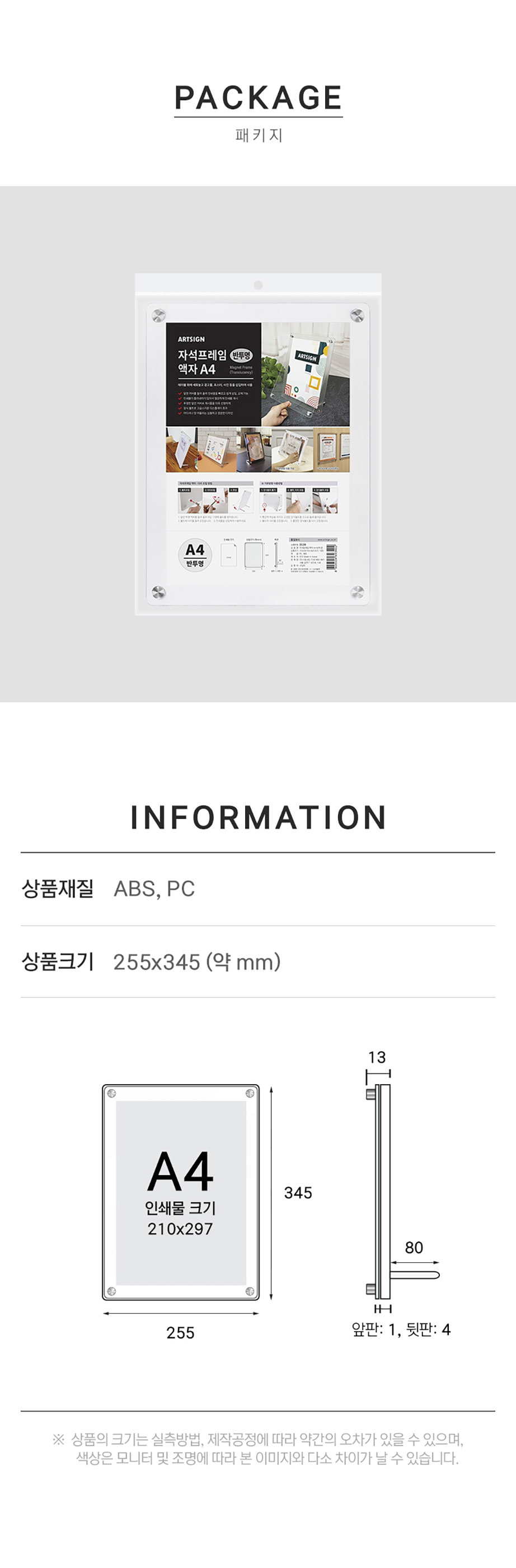 ■ 품명및모델명 : 자석프레임 액자(A4/반투명/210*297mm/3539/아트사인)