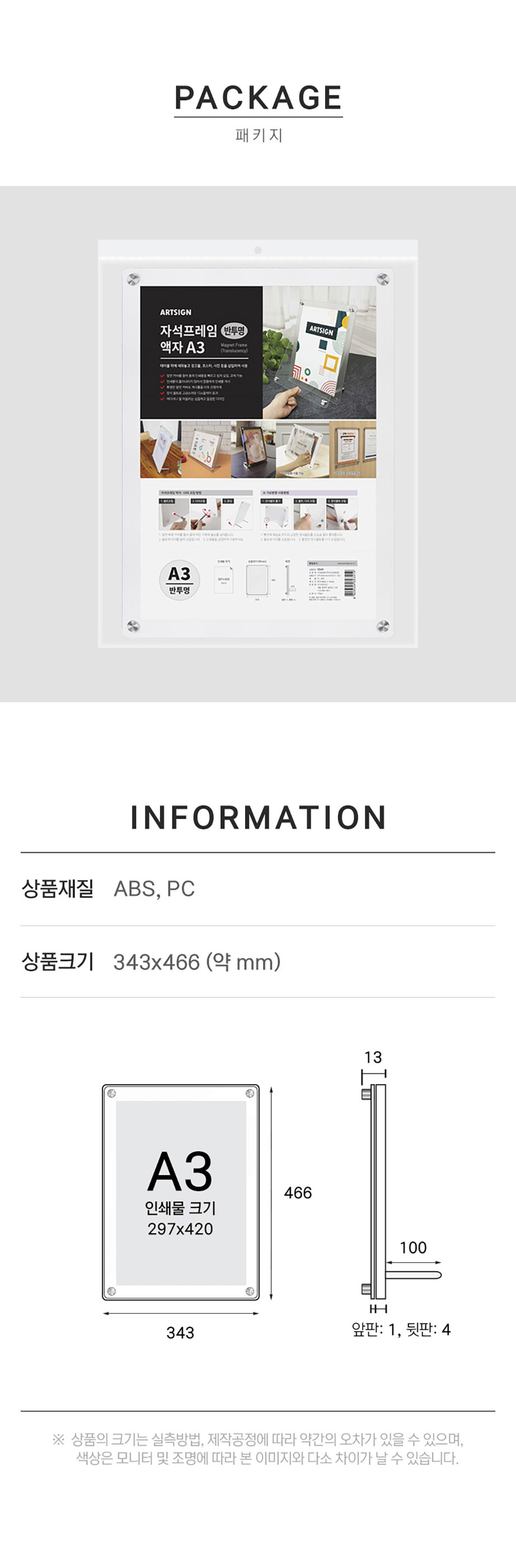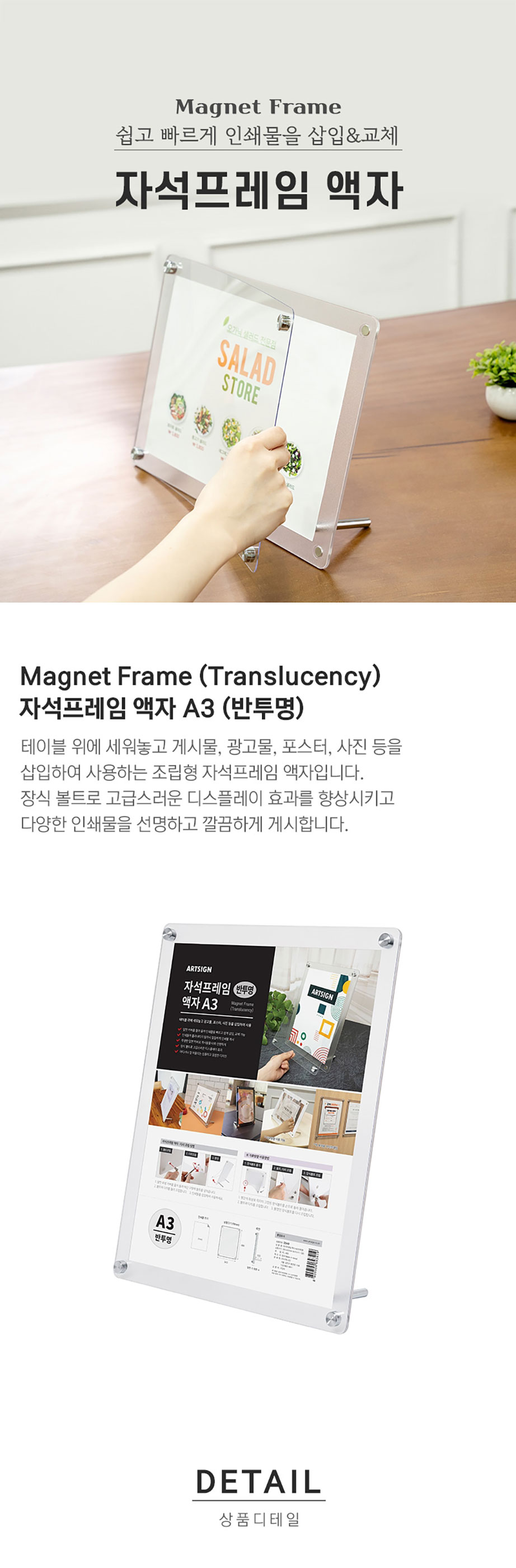 ■ 품명및모델명 : 자석프레임 액자(A3/반투명/297*420mm/3540/아트사인)