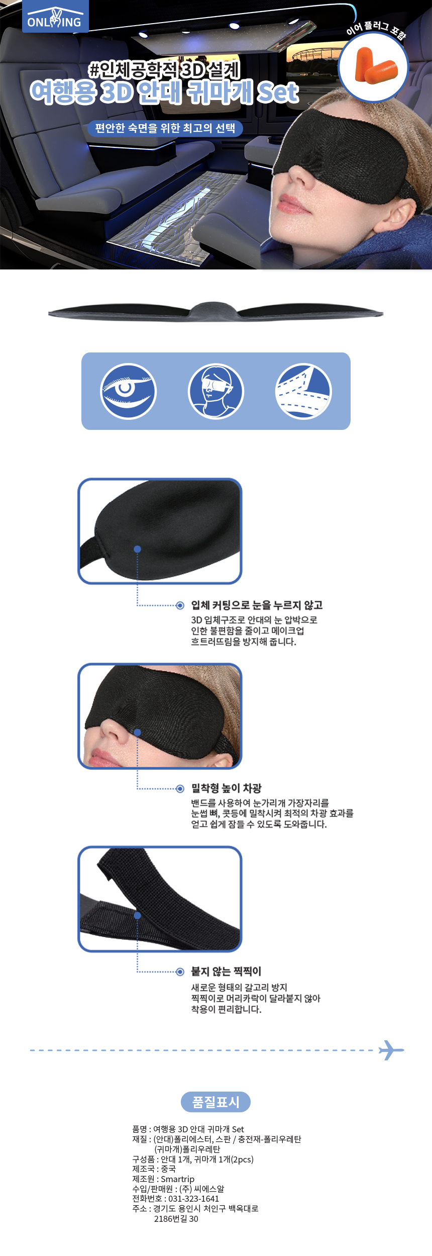 ■ 품명및모델명 : 여행용 3D안대 귀마개 세트(온리빙)