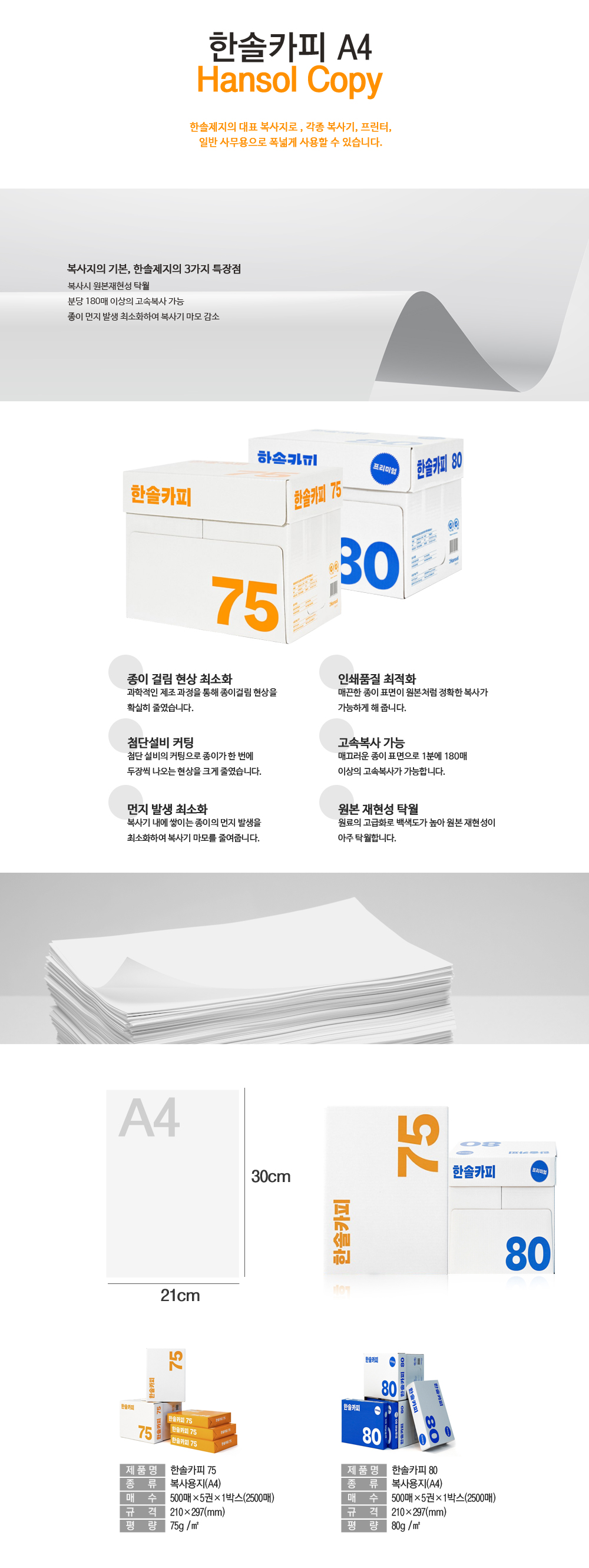 복사용지A4(80g/한솔/500매*5권/박스)/박스