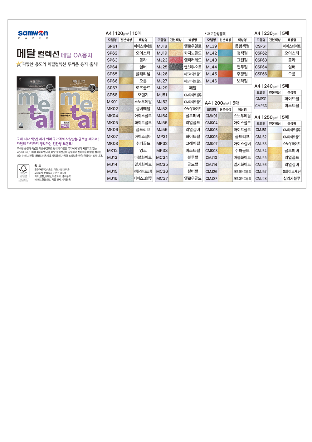 ■ 품명 및 모델명 : 메탈컬렉션(SP66/오름/120g/m2/A4/삼원)