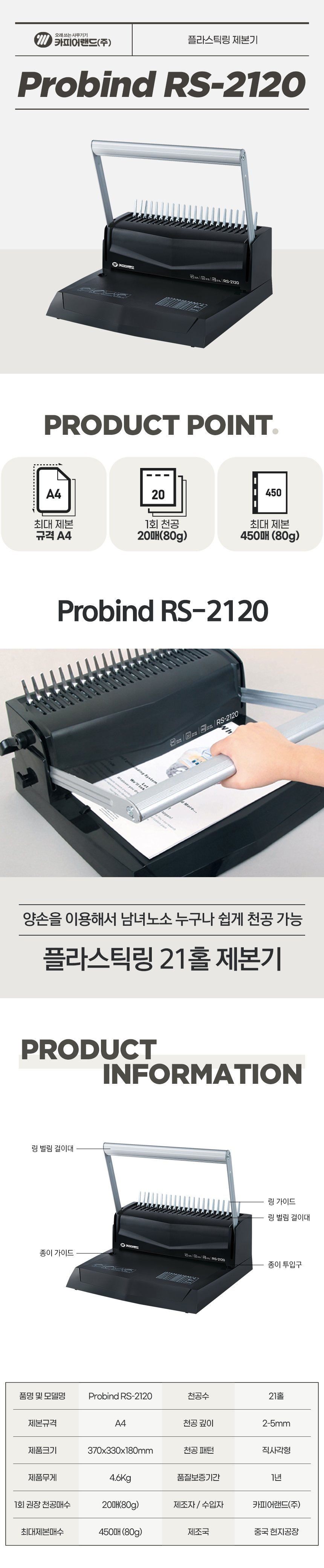 ■ 품명 및 모델명 : 플라스틱링 제본기(RS-2120/카피어랜드)