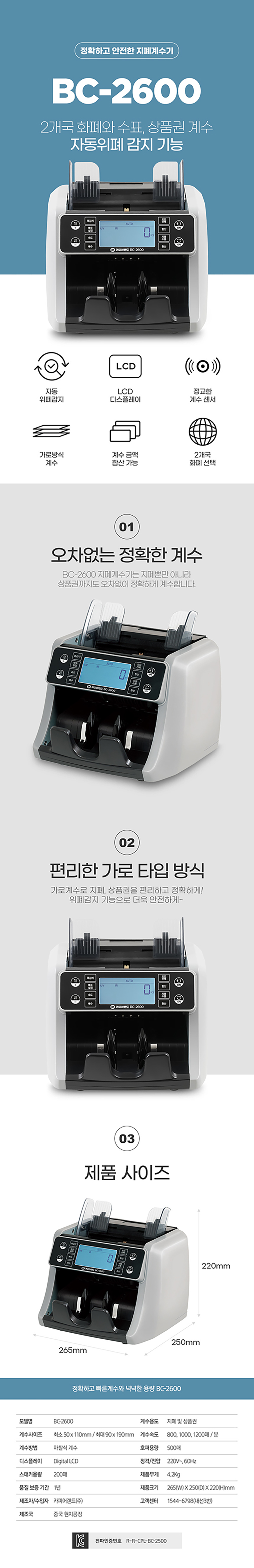 ■ 품명 및 모델명 : 지폐계수기(BC-2600/카피어랜드)
