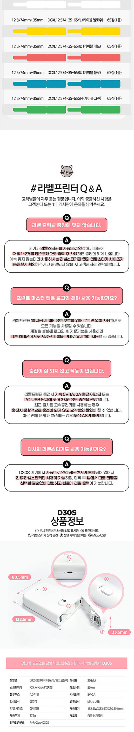 ■ 품명 및 모델명 : 라벨프린터(DS30S/화이트/라벨스티커 3세트/카피어랜드)