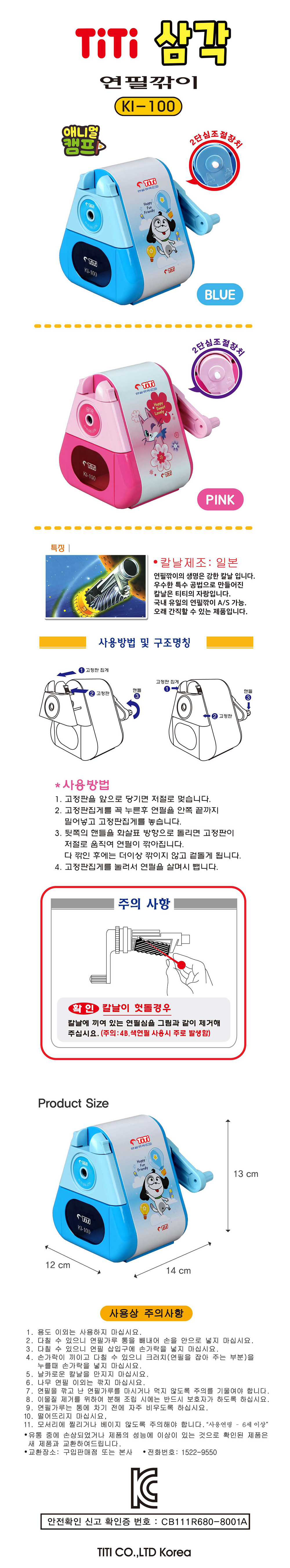 ■ 품명 및 모델명 : 티티삼각 연필깎이(블루/KI-100/티티경인)