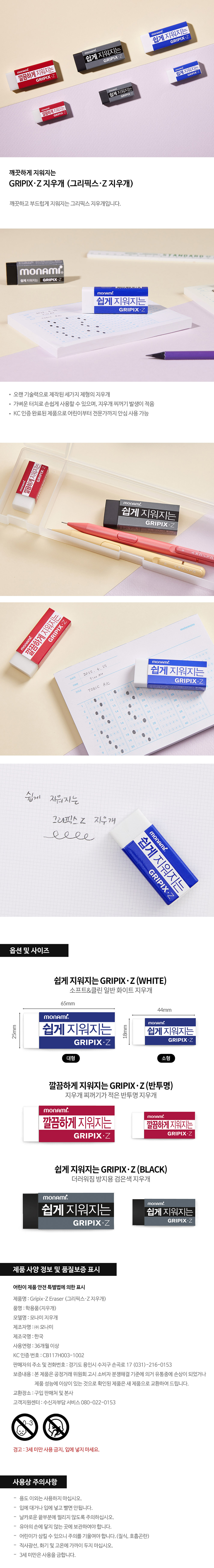 ■ 품명 및 모델명 : 지우개 쉽게 지워지는 GRIPIX-Z(대형/흰색/모나미)