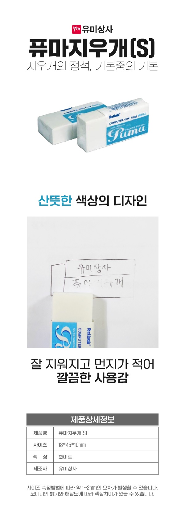 ■ 품명 및 모델명 : 퓨마 지우개(소/낱개/유미상사)