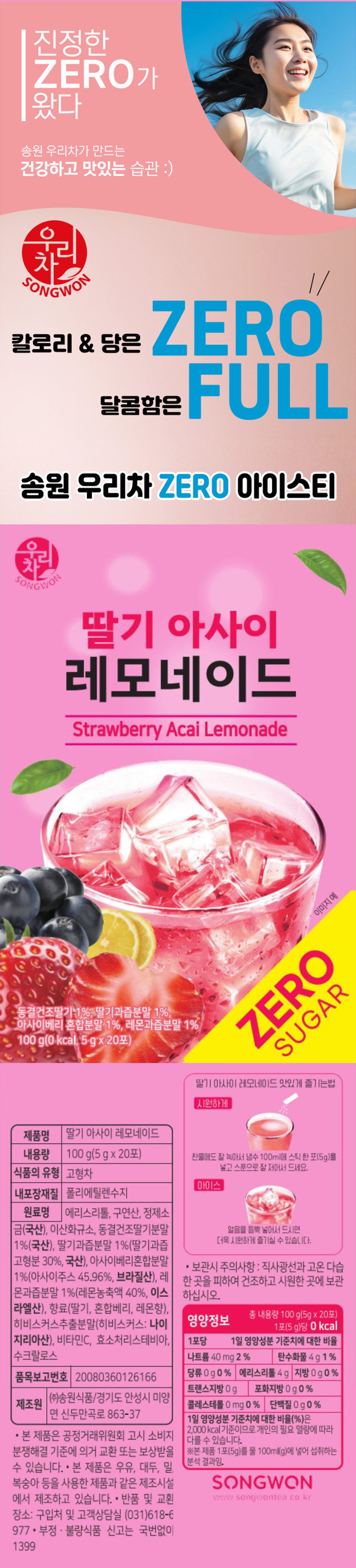 ■ 품명 및 모델명 : 딸기아사이 레모네이드 제로슈가(5g*20T/송원식품)
