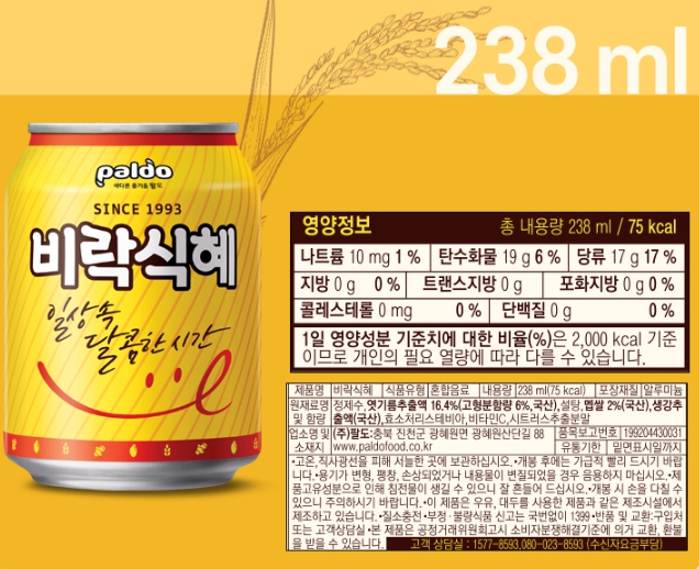 ■ 품명 및 모델명 : 비락식혜 제로(238ml*24캔/팔도)