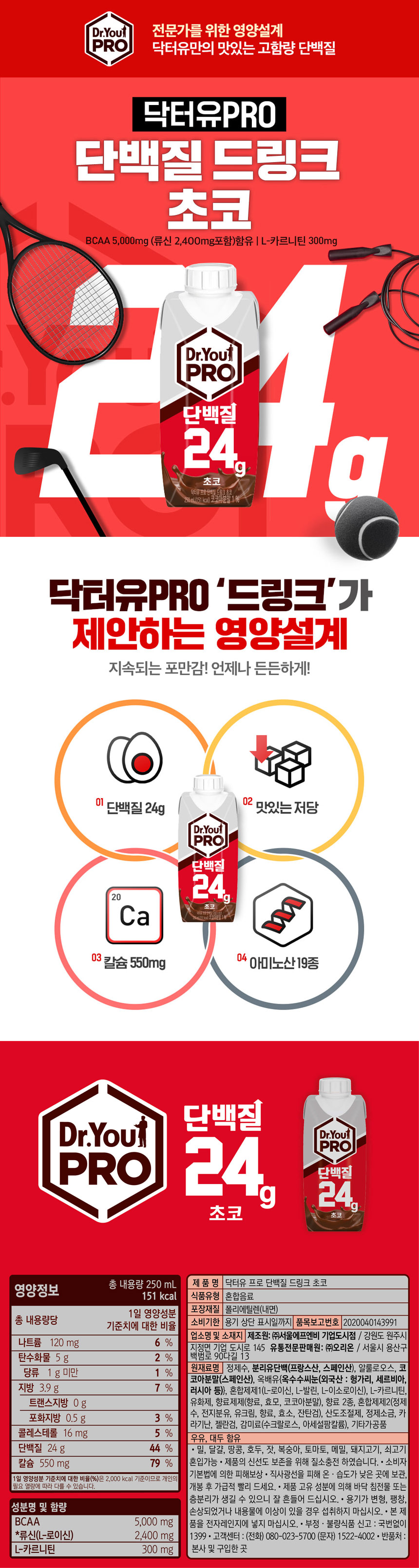 ■ 품명 및 모델명 : 닥터유프로 단백질드링크 초코(250ml*24입/오리온)