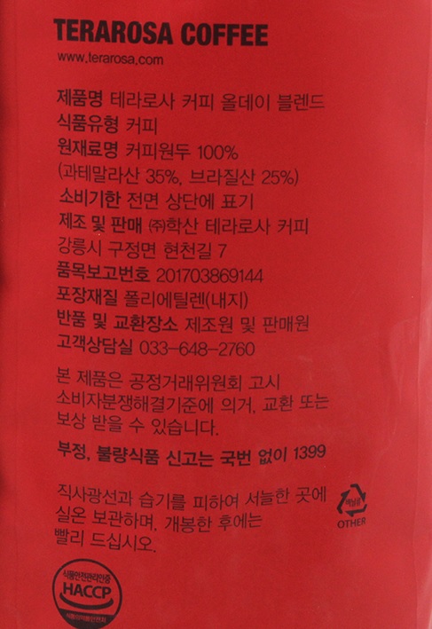 ■ 품명 및 모델명 : 테라로사 올데이블렌드 원두커피 1130g