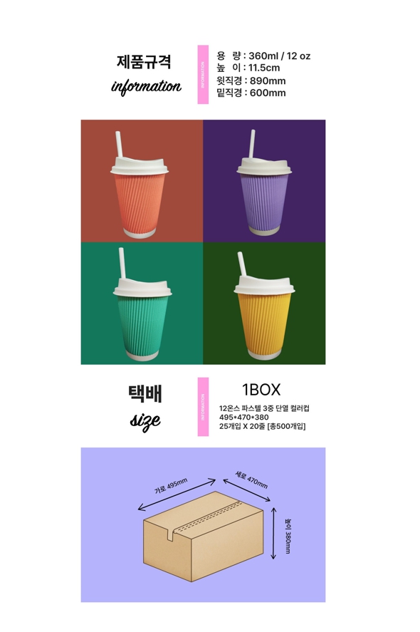 ■ 품명 및 모델명 : 웨이브컵 12oz 1박스 라벤더(360ml/25개입*20줄/500개)