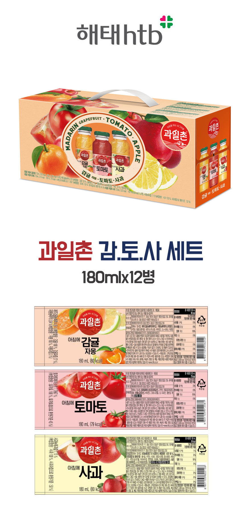 ■ 품명 및 모델명 : 과일촌 아침에 미니병선물세트 (감귤+토마토+사과 세트/180ml*12병/해태)
