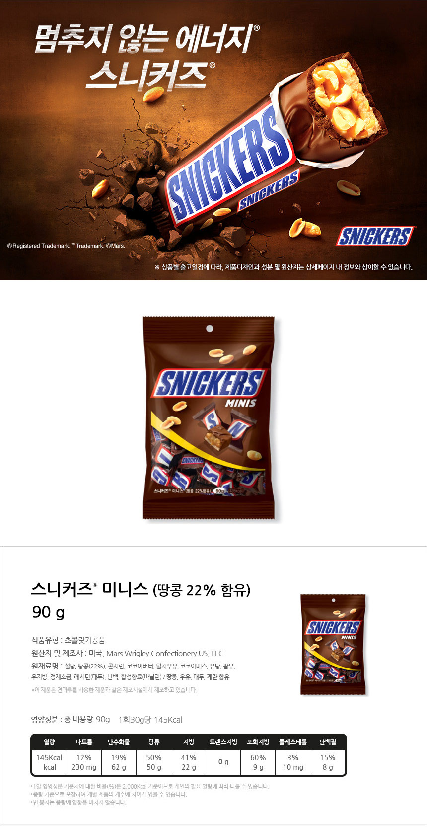■ 품명 및 모델명 : 스니커즈 미니스(90g/한국마즈)