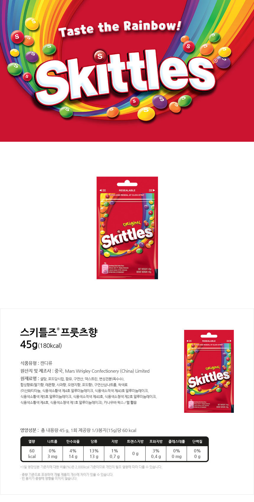 ■ 품명 및 모델명 : 스키틀즈 오리지날(45g/한국마즈)