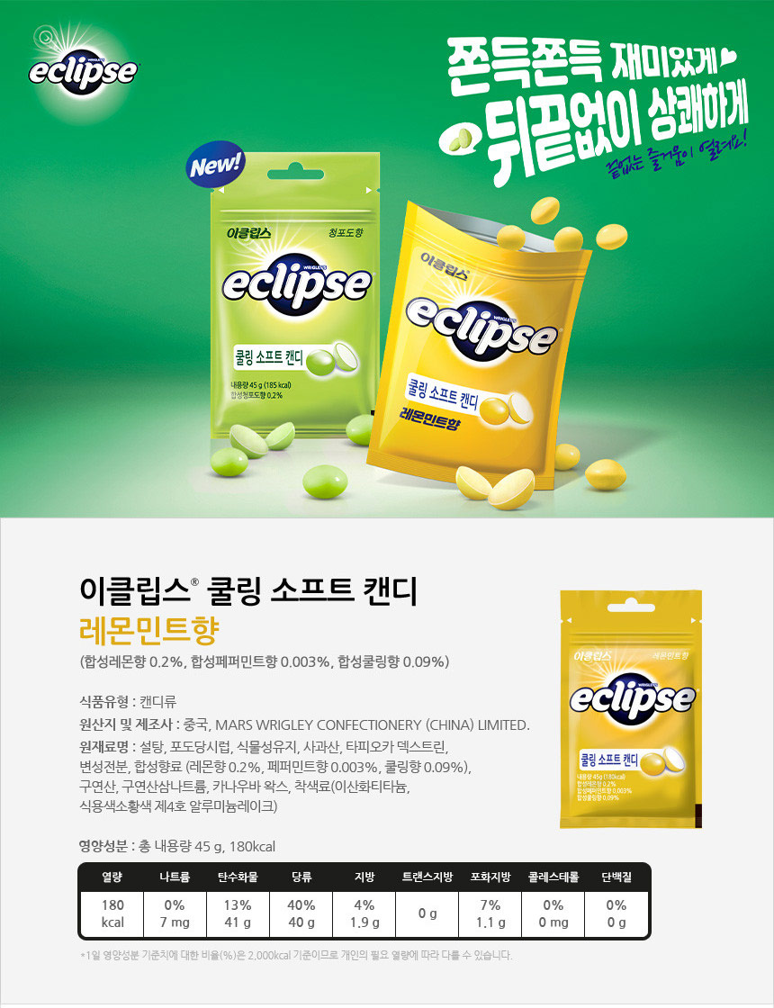 ■ 품명 및 모델명 : 이클립스 쿨링소프트캔디 레몬(45g/한국마즈)