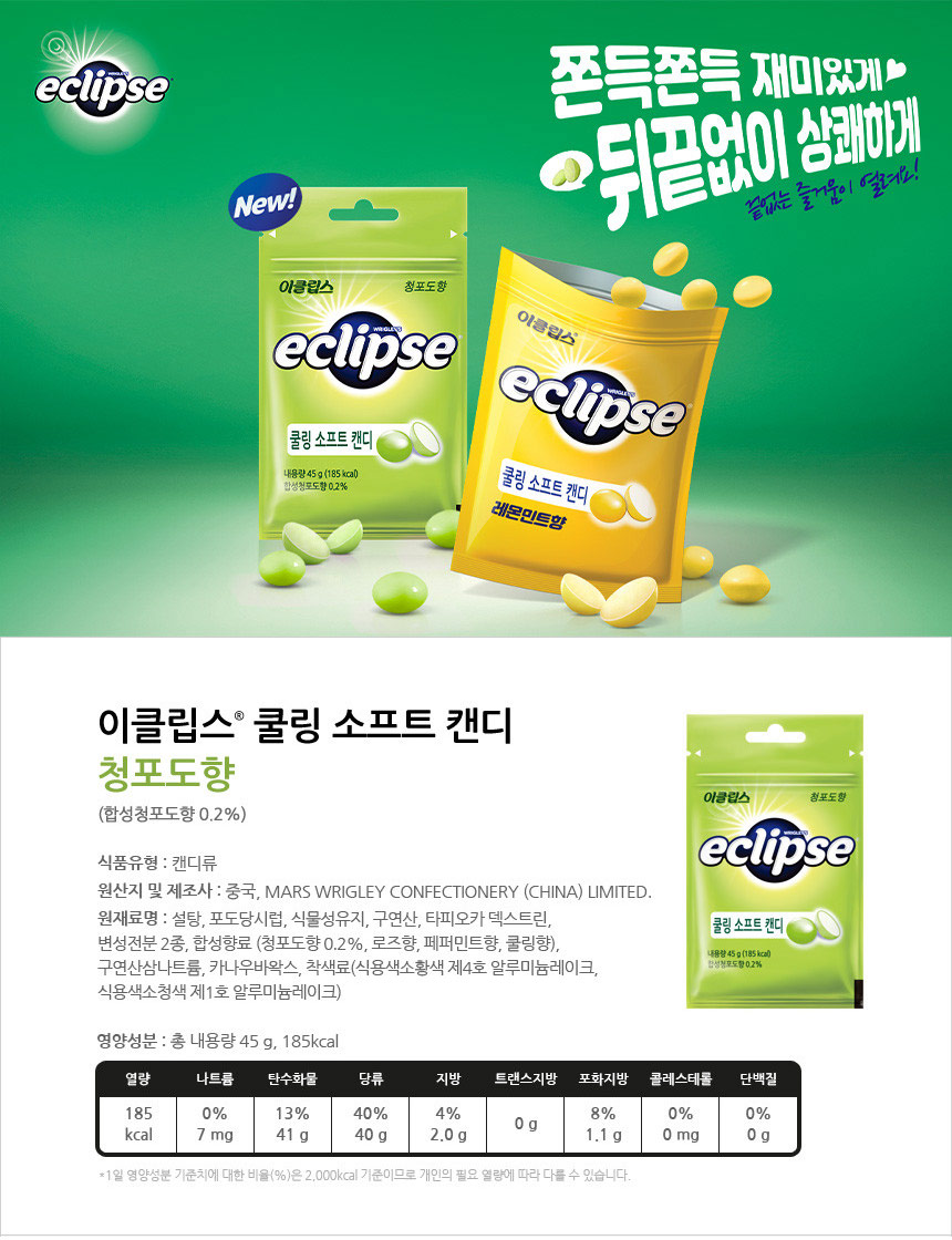 ■ 품명 및 모델명 : 이클립스 쿨링소프트캔디 청포도(45g/한국마즈)