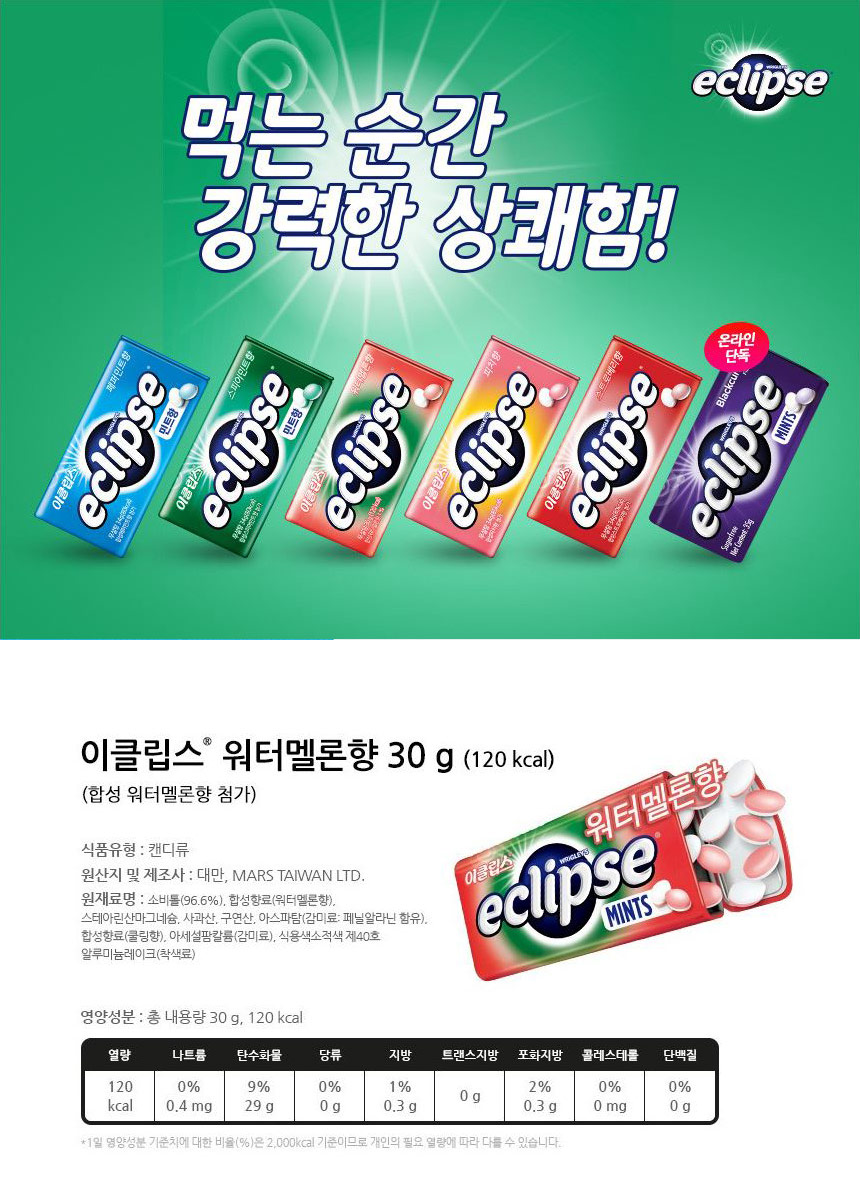 ■ 품명 및 모델명 : 이클립스 캔디 워터멜론(34g/마즈)