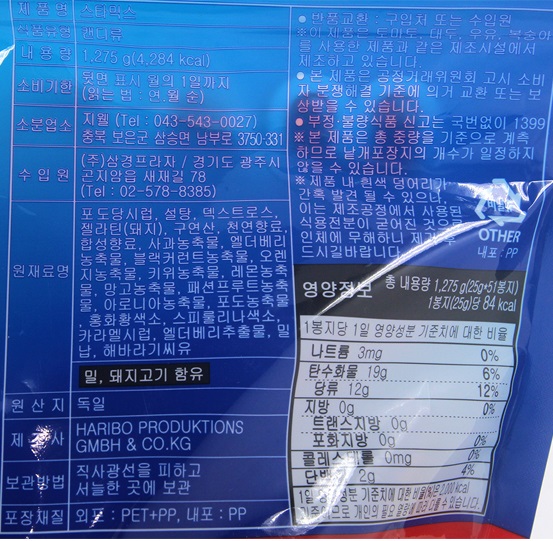 ■ 품명 및 모델명 : 하리보 스타믹스 1275g(25gx51봉지)